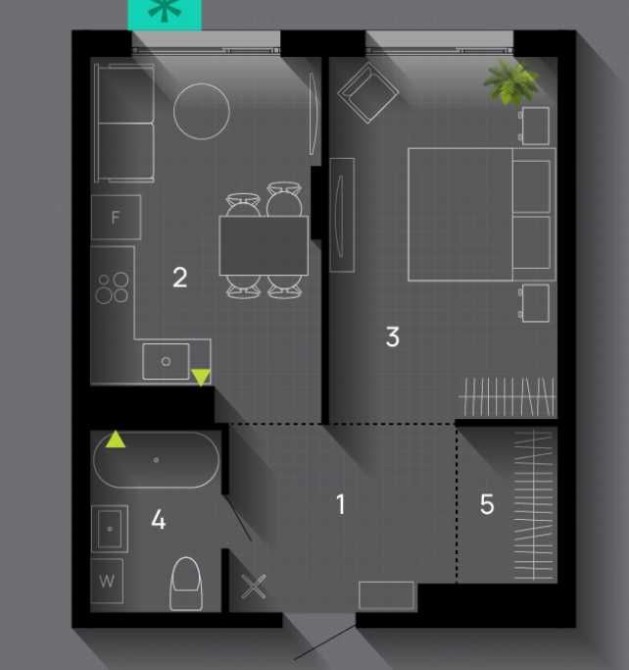 • Общая площадь 42 м2