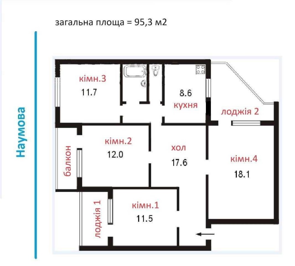 • Общая площадь 95 м2