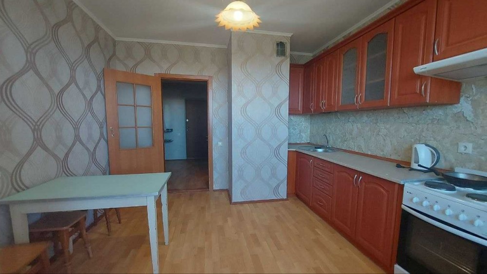 Квартира перебуває в житловому стані; вмонтована кухня МДФ, на підлозі постелений лінолеум, металопластикові вікна, лоджія утеплена та обшита дерев'яною вагонкою, вхідні бронедвері.