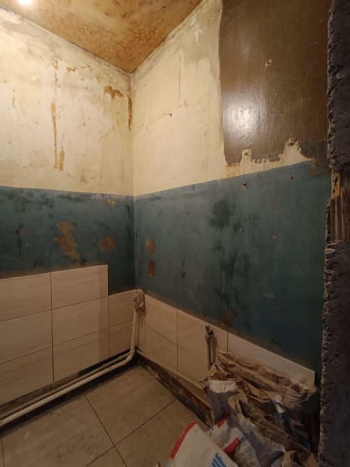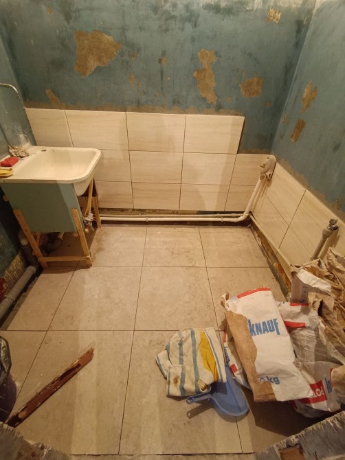 - в ванной на пол уже положен