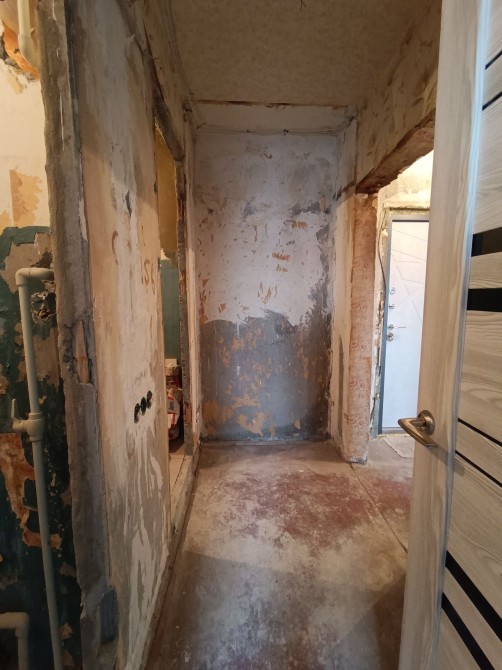 - в кухне и комнате стены отшпаклеваны,вам остаётся только поклеить обои и натянуть потолок