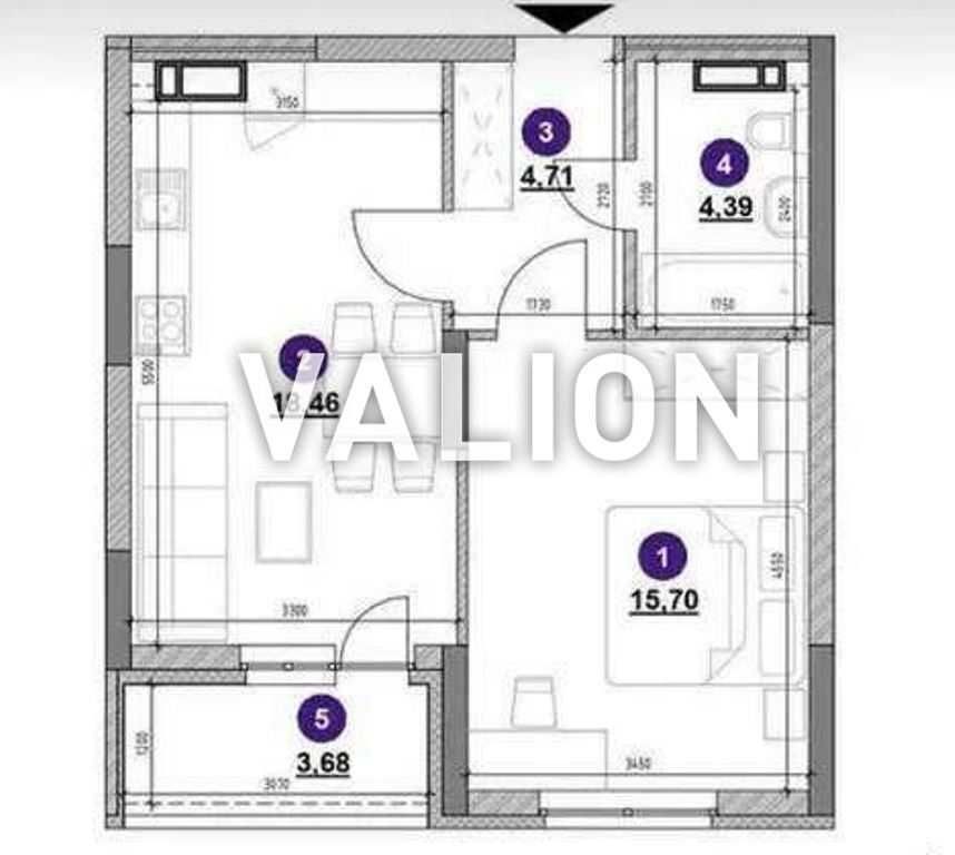 • Загальна площа 47 кв.м, житлова 16 кухня 18,46 кв.м.
