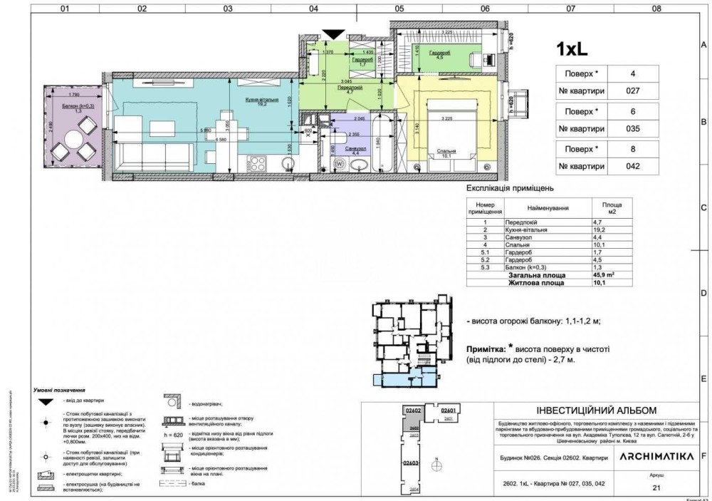 • Комфорт Кондиционер, Подогрев полов, Душевая кабина, Мебель на кухне, Гардероб, Консъерж, Охраняемая территория, Гостевой паркинг, Подземный паркинг, Лифт