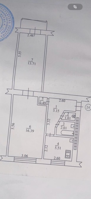 • Площадь кухни 5.51 м2