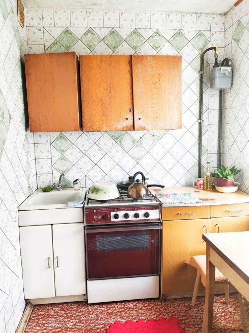 Вона світла та охайна, оснащена необхідною побутовою технікою: плитою, пральною машиною