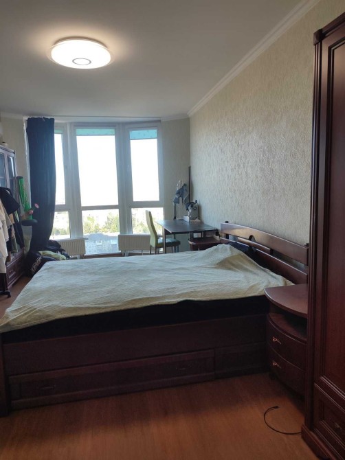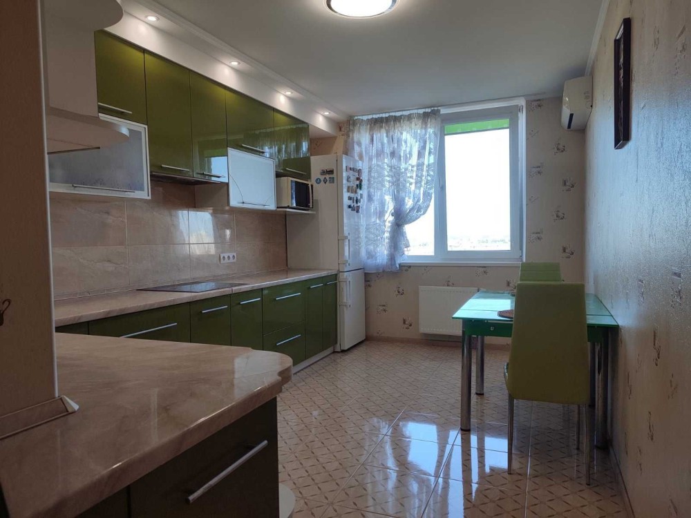 Інтер'єр у спокійних тонах, що додає простору та затишку. Панорамні вікна, наповнюють квартиру природнім світлом і відкривають чудовий краєвид..В кожній кімнаті та на кухні-кондиціонери ,є лоджія з окремим місцем для куріння.В квартирі простора кухня 15м ,дві окремі спальні кімнати ,санвузол,кладова,вбудовані шафи-купе.