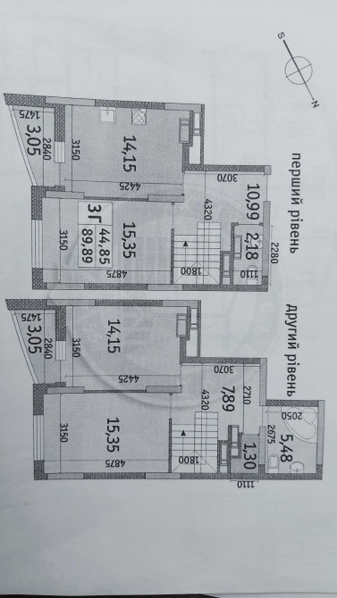 Квартира дворівнева, вдале планування, після забудовника під ваш дизайнерський ремонт.