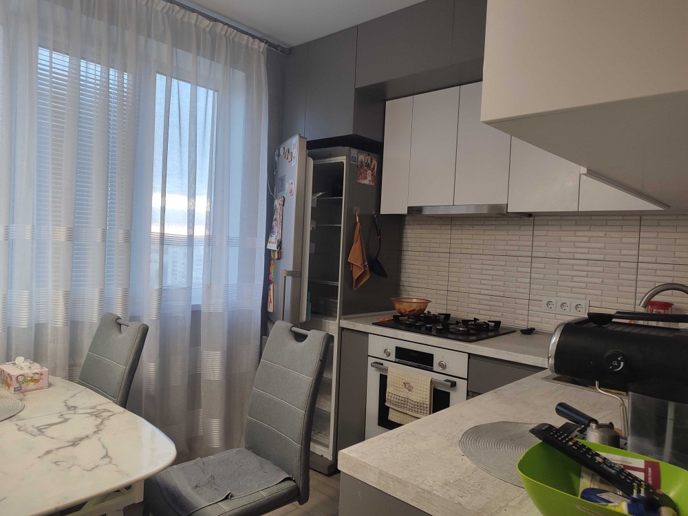 2-х кімнатна квартира на Теремках-2, навпроти ТРЦ Республіка, Епіцентр, Метро. Зроблений ремонт (повністю зроблена заміна електрики, стоять лічильники та безперебійники). На кухні, ванній, в туалеті та коридорі - нова плитка. В кімнатах новий леноліум. Квартира оздоблена в світлих тонах. Є 2 лоджії. Є парковка біля дому безкоштовна. Ремонт зроблений до кінця, тільки змінити двері. Є лічильники на воду. Поряд магазин Веллмарт, АТБ, аптеки та ресторан. Через 1 зупинку ринок Столичний. Поряд 3 дитсадочки та 3 школи. Тихе місце для життя. т.044 200 10 80