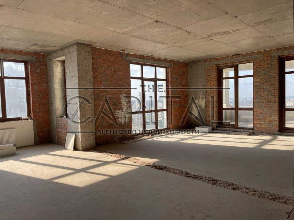 Ексклюзивні апартаменти без ремонту в клубному будинку Ambassador House (клас De Luxe), вул. Франка, 4б. Площа 129 м², вільне планування, панорамні вікна, велика тераса, та балкон з краєвидом на Софійський і Володимирський собори, Андріївську церкву, Покровський монастир, Києво-Печерську лавру та історичний центр міста.