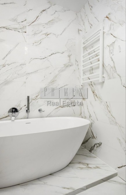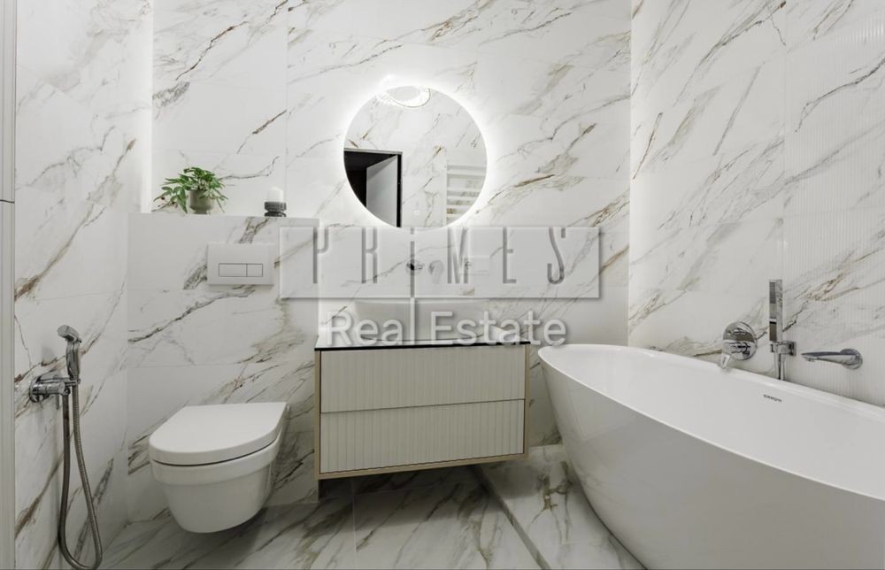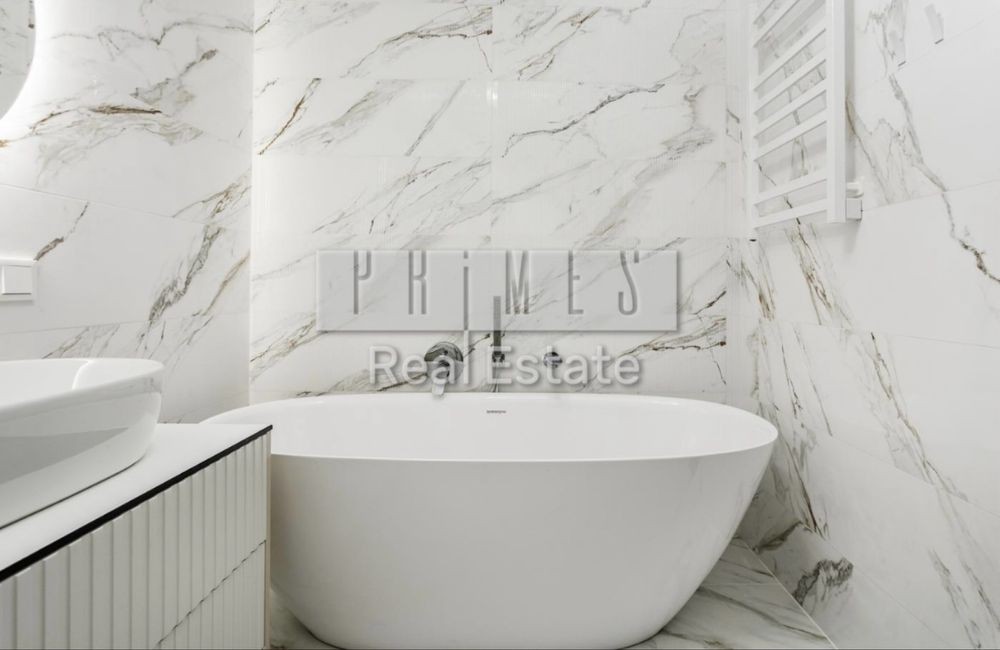 При виконанні ремонту використовувалися якісні екологічно чисті матеріали. Кафель в санвузлах виробництва Іспанія, ванна з каміння, сантехніка Villeroy Boch, стильні сучасні світильники та люстри.