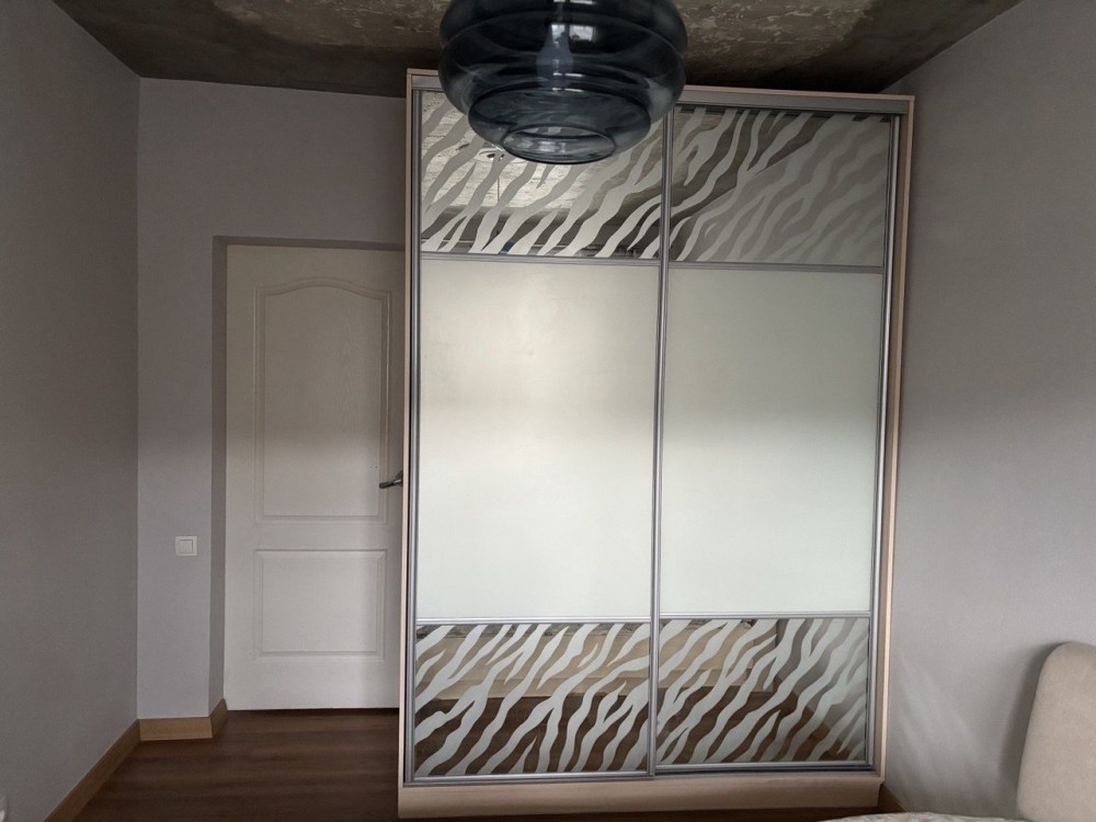В детской (меньшей спальне) демонтирован балкон, организована удобная рабочая зона: шкаф-купе и письменный стол остаётся новым владельцам.