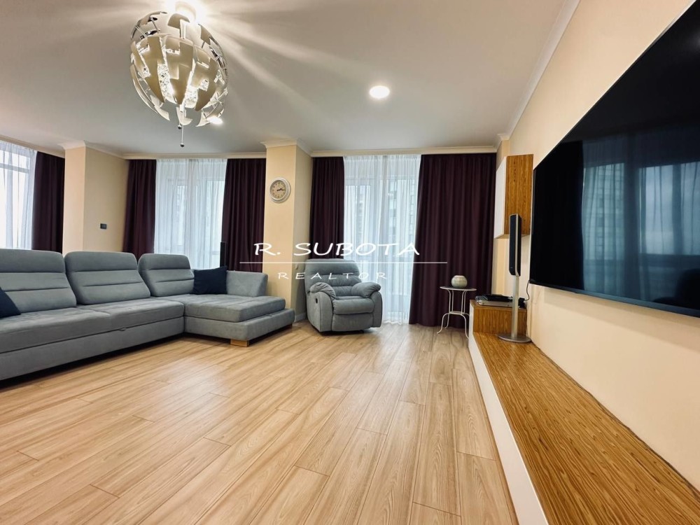Просторная 4-комнатная квартира на 8 этаже с дизайнерским ремонтом, полностью укомплектована мебелью и техникой.