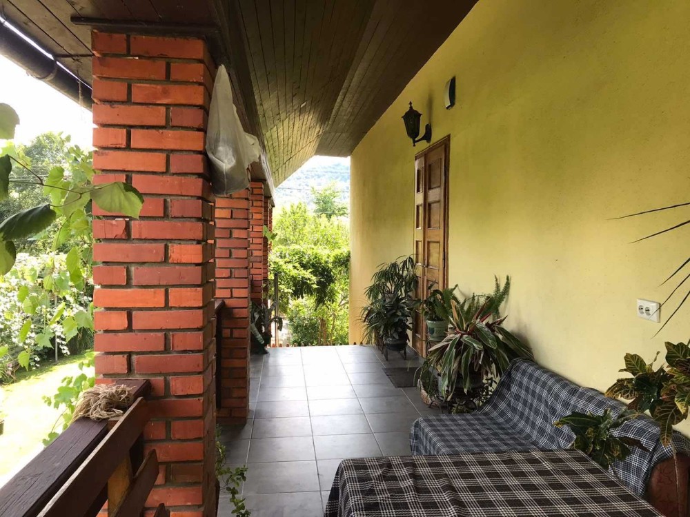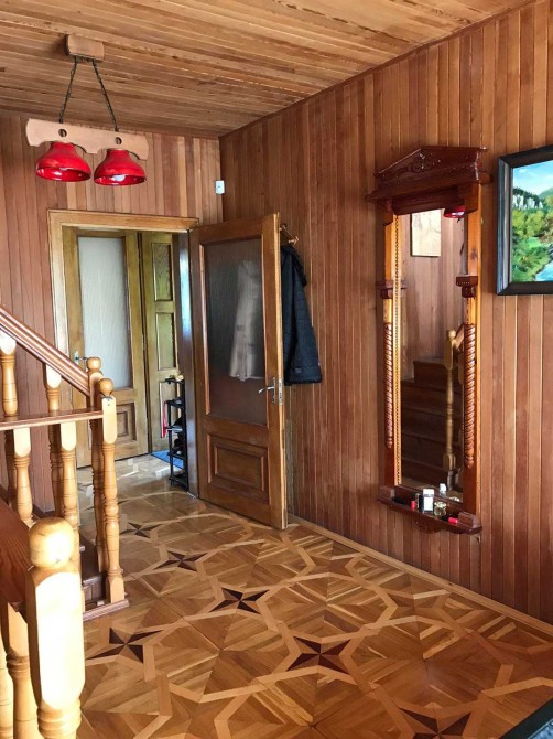 Продається двохповерховий цегляний будинок з цокольним поверхом.Має 5 житлових кімнат,кухня-студіо ,хол,3 санвузли,тераси на цокольному та першому поверхах.В цокольному поверсі розміщена робоча кухня,кладова,кімната для відпочинку,сауна з басейном.До будинку прилягає цегляний гараж з автоматичними воротами.Є прибудова з двома кімнатами та господарчими приміщеннями ,такох є окремий погріб для зберігання овочів.На ділянці родючий фруктовий сад та виноградник.У будинку проведено 3 види опалення:сучасний камін з розводкою по кімнатах,газове та електричне.Вода централізована.Будинок розміщений біля річки та струмка,недалеко від лісу,в новому житловому районі міста.