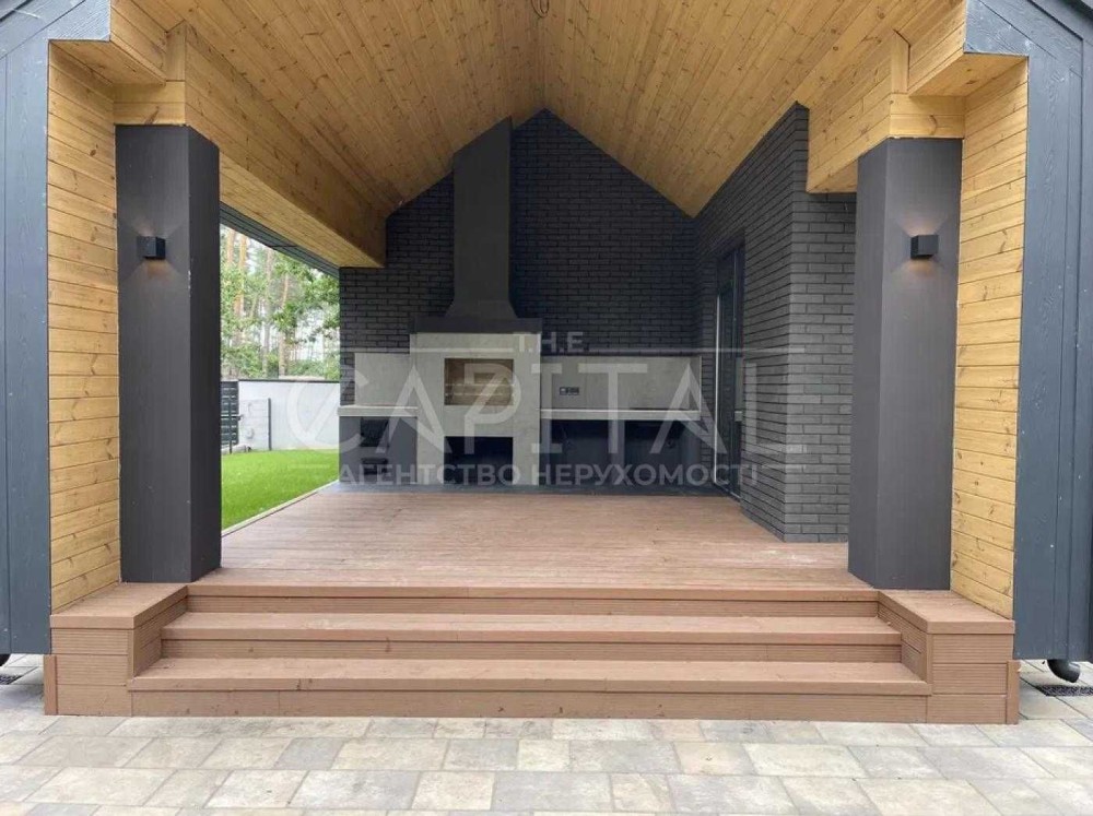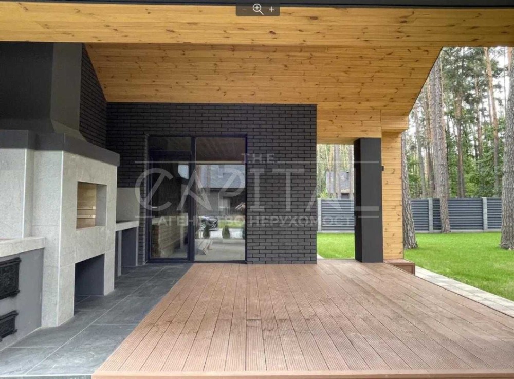 – 1 поверх: вітальня з подвійним світлом та висотою 6 метрів з каміном 26.4 м2 + кухня 32 м 2 панорамні вікна + вихід на терасу та неймовірні види на сосни, 1 гостьова спальня 13 м2 або вбиральня, котельня 7.8 м2, ванна кімната 5 м2, передпокій 8 м2 + повністю зроблена тераса 23 м2 з мангалом та стільницею;