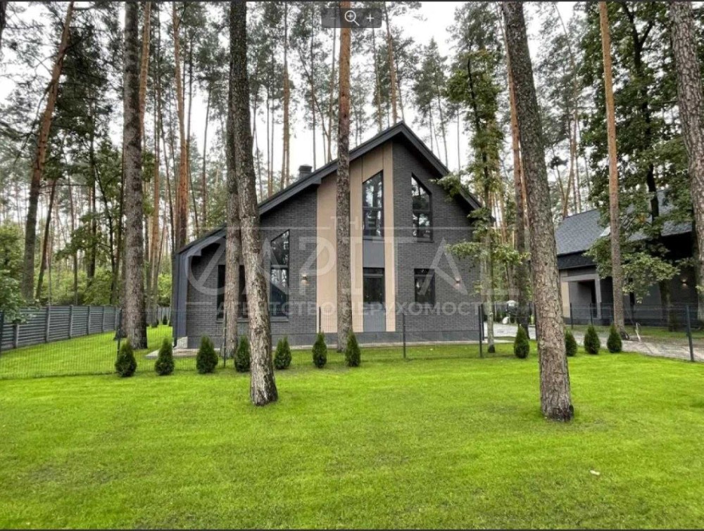 БЕЗ%, будинок 190м2, Віта Поштова, СТ «Хуторець», навколо ліс, 9 км Київ та м.Теремки, Одеська траса Загальна площа будинку - 190м2. Площа земельної ділянки 10.38 соток. Будинок знаходиться в затишному та мальовничому місці, між Вітою Поштовою та Тарасівкою, оточений дорослим хвойним та листвяним лісом, з власним виходом на озерце. Побудований на пагорбі, дає можливість насолоджуватись неперевершеним видом на ліс та озеро, крізь великі панорамні вікна будинку 24/7. Раціональне та комфортне планування, великі, світлі та просторі кімнати з панорамними вікнами. 1й поверх: столова – вітальня, кухня, гердероб, санвузол, гараж, котельня; 2й поверх: три окремі спальні кімнати, санвузол. Об’єкт для поціновувачів заміської тиші та ранкових піщих прогулянок!