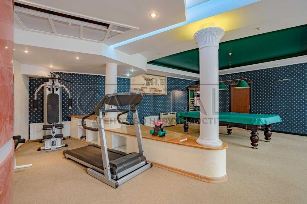 Гардероб - італійські меблі «Byblos». Камінна та бенкетні зали. Сауна. Басейн. Винний льох.
