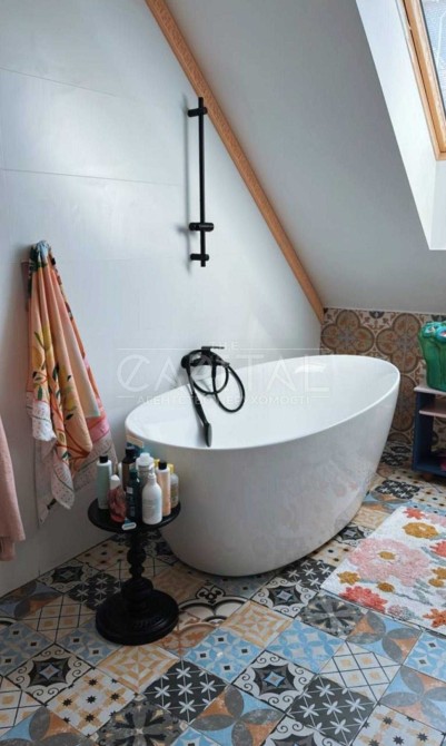 На іншому поверсі велика ванна, 2 кімнати, велика площа біля сходів наразі як бібліотека.