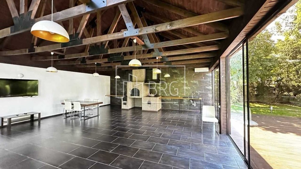 На территории: Ландшафтный дизайн, бассейн с подогревом, крытая беседка с печью, тандыром (подведена вода), помещение для персонала с кухней и с/у, автополив, гостевая парковка