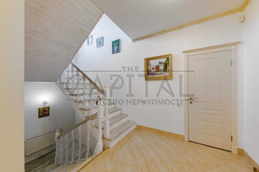 Ремонт виконаний в стилі Нео класика, в спокійних тонах, сходи деревяні, також на першому поверсі є затишний кабінет та гостьовий сан вузол для зручності.