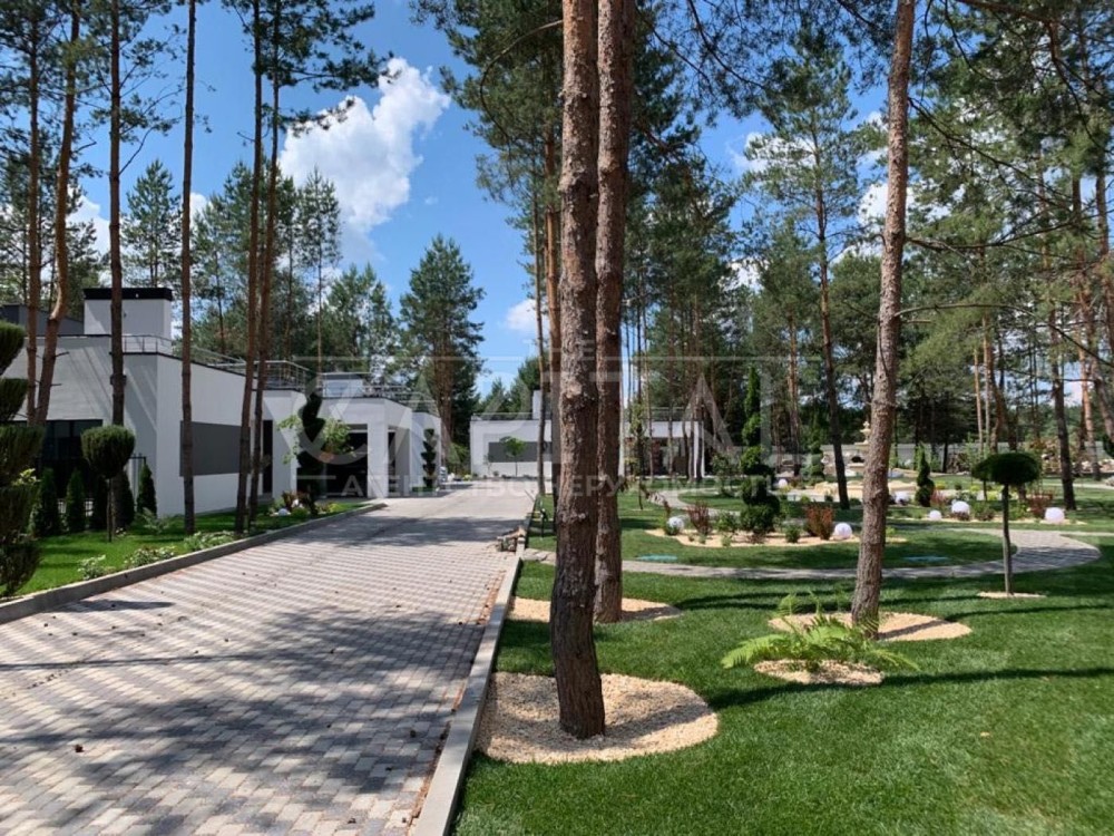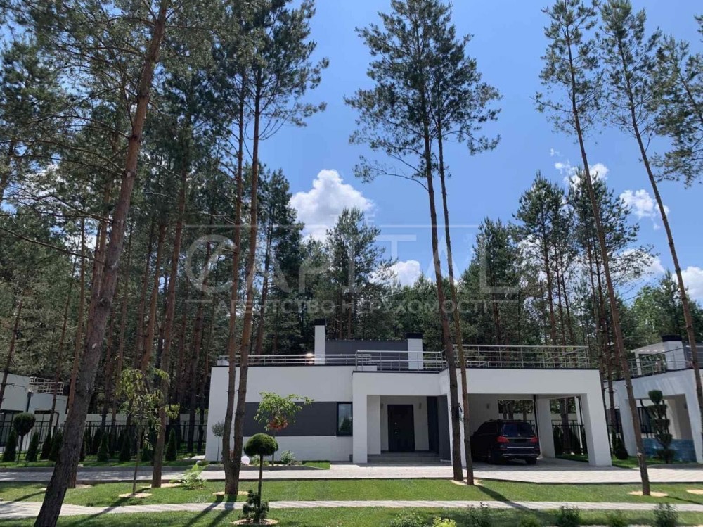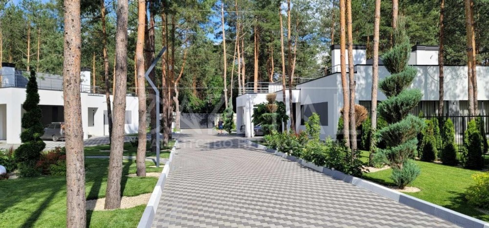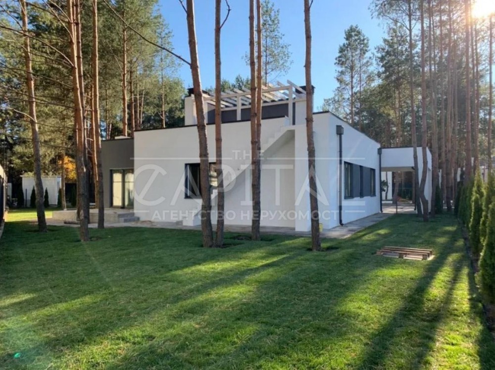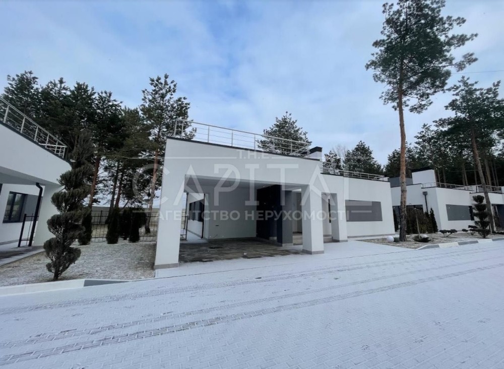 Пропонується до продажу сучасний стильний котедж площею 210 м² у закритому котеджному містечку в передмісті Києва. Локація сосновий ліс, лише 20 хвилин їзди до столиці. Ідеальне поєднання природи, тиші та швидкого доступу до міської інфраструктури.