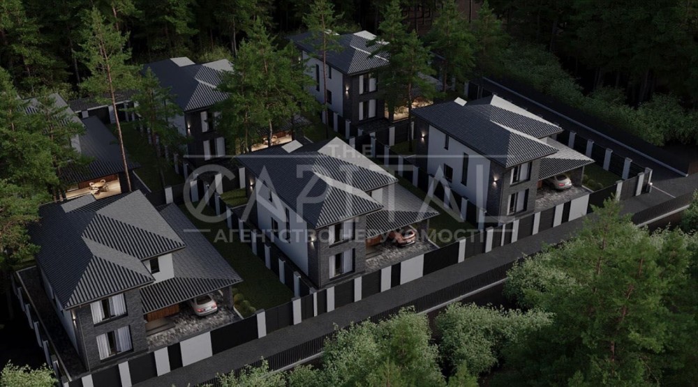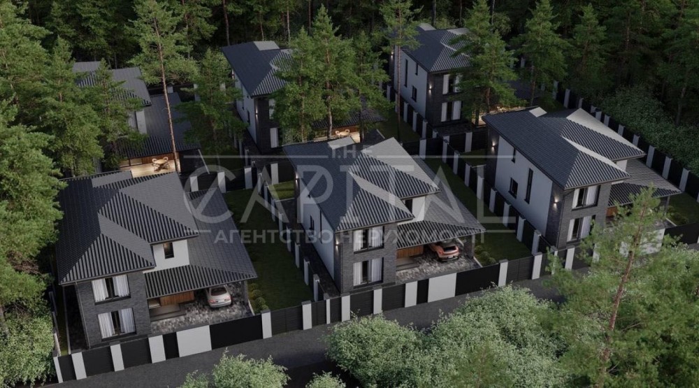 Предлагаем к продаже 6 домов в закрытом коттеджном комплексе среди соснового леса — всего 15 минут до Киева.