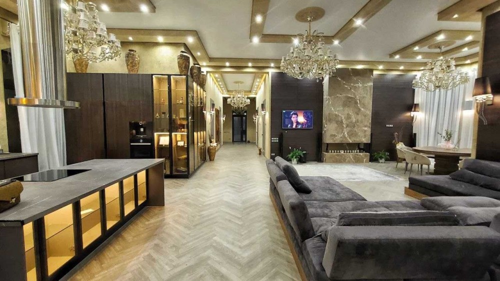 В доме выполнен дизайнерский ремонт и оснащен итальянской мебелью .