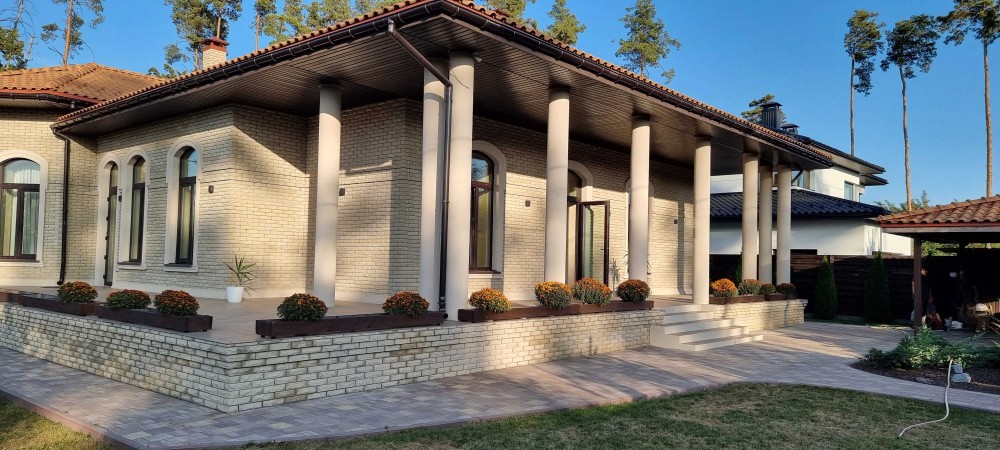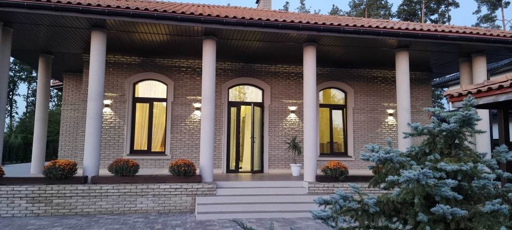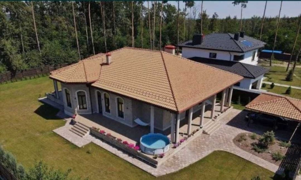 Дом построен в коттеджном городке среди вековых сосен . Удобное расположение 8 км от Киева , 15 мин до Печерска . Асфальтированный подьезд ,удобная инфраструктура .Площадь 250м2 первый этаж ,возможность второго этажа 150 м2 . На участке 17соток в окружении сосен и дубовой рощи .