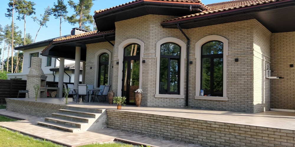 По периметру дома имеется 200м2уютных терасс . На восточной части дома располагается зона релакса и барбекю.