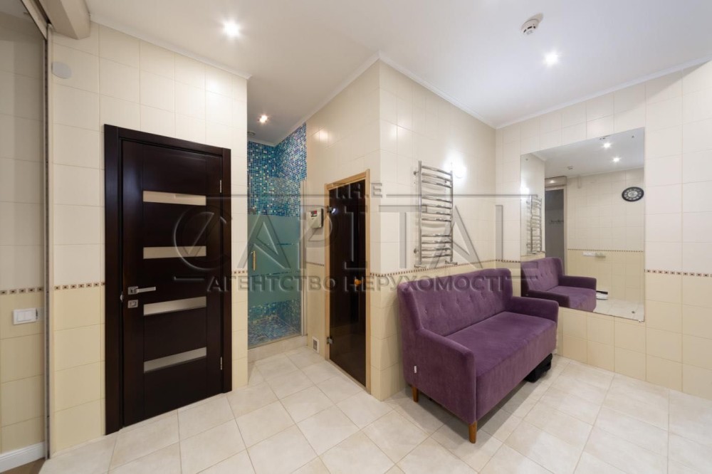 1 поверх: кухня25квм, вітальня 45 квм, кімната 27кв.м, с/в, душова, сауна, басейн- з без хлорною багаторівневою системою очистки та має противотік.