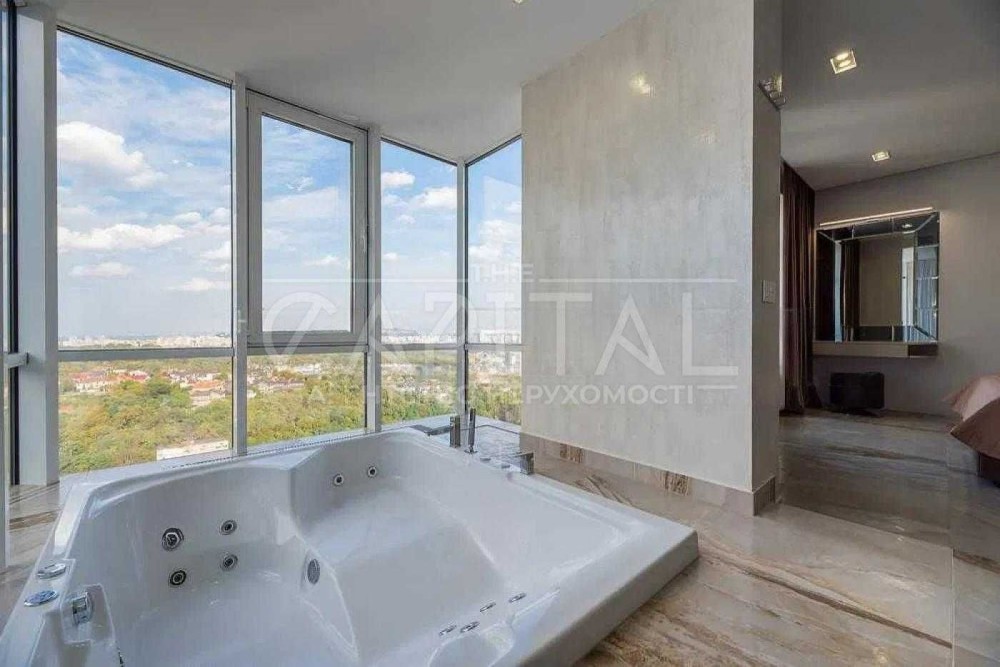 Загальна площа 120м.,кв., простора кухня-вітальня, майстер-спальня з гардеробною та санвузлом з душем та джакузі з панорамними вікнами, дитяча кімната, гостьовий санвузол, дві гардеробні, пральна кімната.