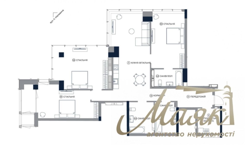 - 3 спальни