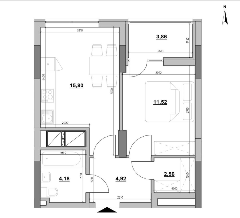 • Общая площадь 42.84 м2