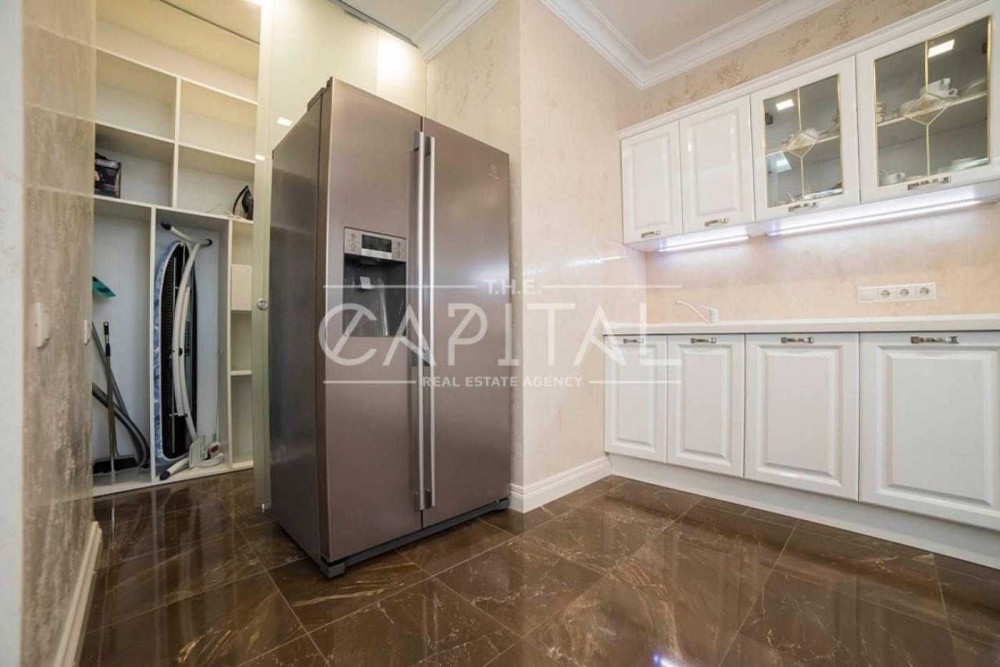 Виконаний дизайнерський ремонт з використанням якісних матеріалів. Просторна вітальня- студія біля 50 кВ.метрів , дві спальні, 3 засклених лоджії, 2 с/у, хоз. Приміщення, постірочна, італійські меблі, вся побутова техніка та сантехніка найкращих світових виробників, 2 бойлера, 3 кондиціонера, на підлозі- дубовий паркет, італійська плитка, стіни- Венеціанська штукатурка, стеля в вітальні- кесони.