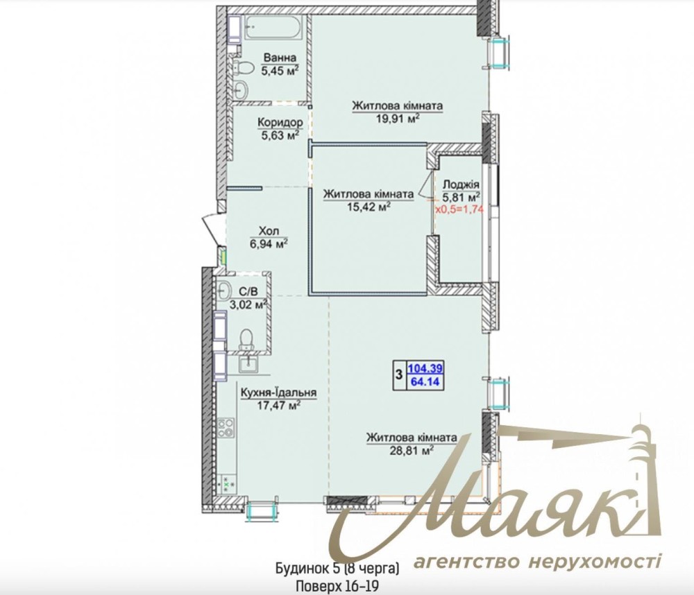 • Общая площадь 105 м2