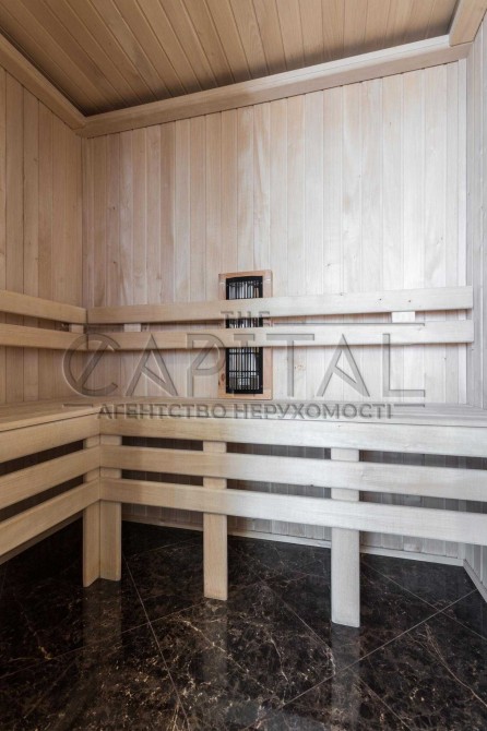 У квартирі зроблено високоякісний ремонт з використанням преміальних матеріалів. Вона має три санвузли, майстер-спальню з джакузі та сауною, дві дитячі кімнати, терасу, а також простору кухню-вітальню.