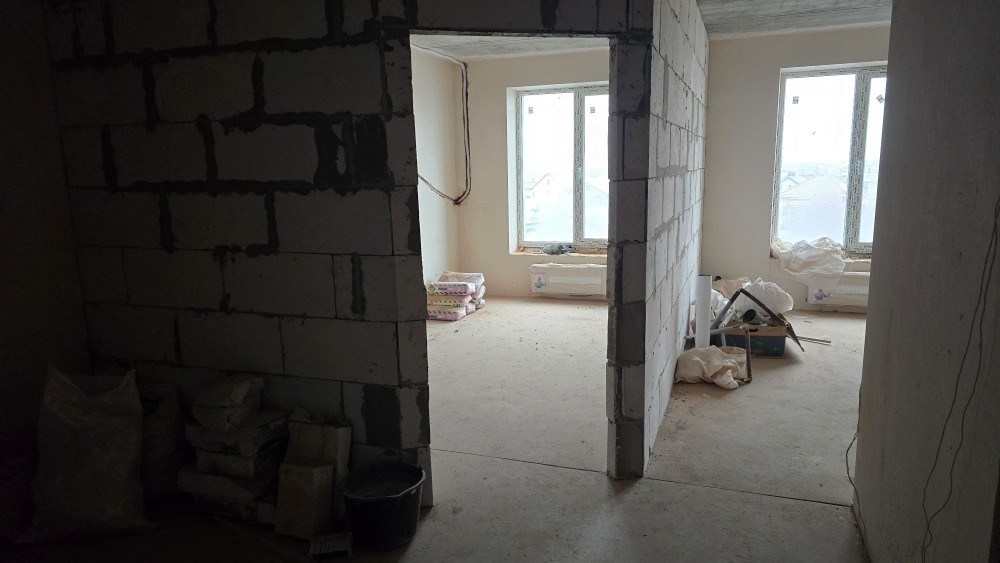 Залита отличная стяжка. Сделана большая часть черновой сантехники. Сделана полная разводка под кондиционеры. Два сан узла. Большая прихожая. Большая кухня хорошая детская. Огромная мастер спальня с зонированием и лоджией с шикарным видом
