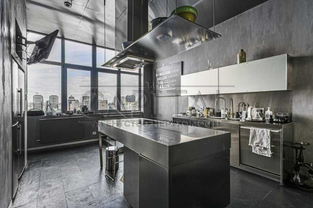 Авторський, стильний ремонт Vip-рівня: італійська кухня укомплектована побутовою технікою Miele, меблі світових брендів Armani, BB, підлога - камінь Ардезія, діючий камін.