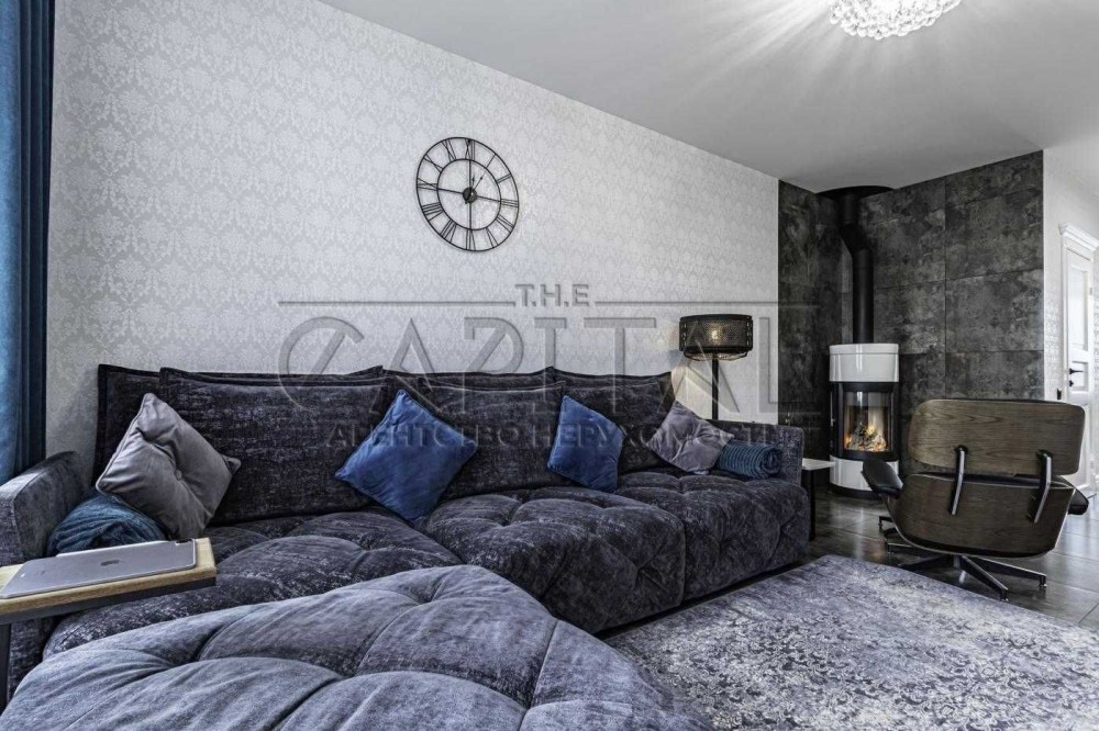 Вас приймає вітальня з дровяним каміном, де просторо і світло, а інтер'єр створює атмосферу розкіші та затишку одночасно.
