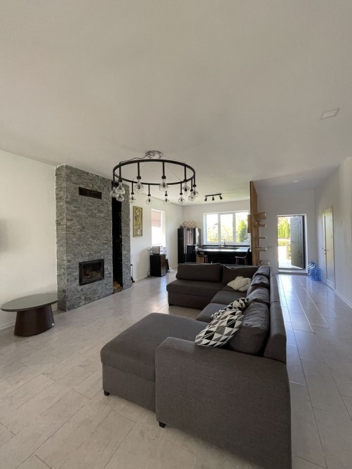 - 1-й поверх - відкритий простір 70 м2: - простора вітальня; - кухня, столова; - вхідна зона; - санвузол (душ); - технічна кімната (під сходами); - камін; - вихід на терасу. Весь перший поверх має підігрів підлоги.