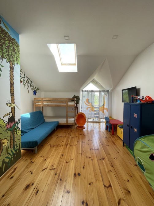 парасолька від сонця; - літня тераса під накриттям, місця для обіду на 4 персони; - газове барбекю; - дитячий майданчик зі спортивним кутом; - газон із системою автополиву.
