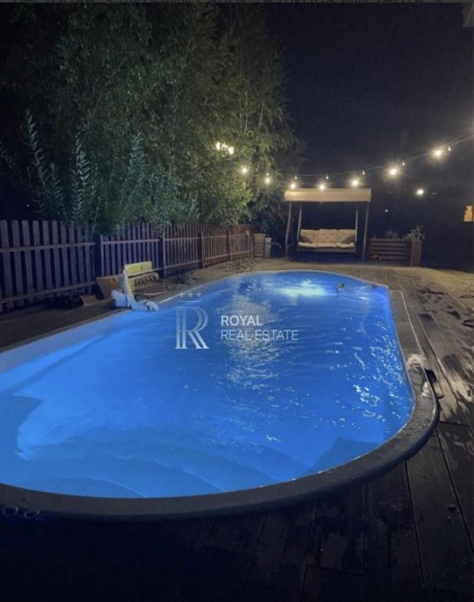 На території ділянки: - особистий басейн 8Х3 із терасою з паркетної дошки та місцями для відпочинку; - брезентове покриття для басейну; - гойдалка для відпочинку; - садові меблі (стіл, диван, два крісла); -
