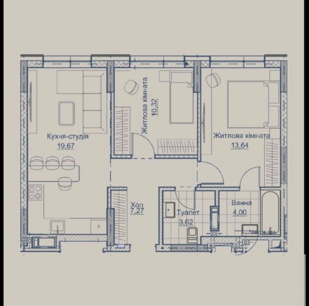 • Общая площадь 58 м2