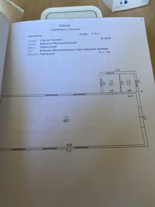• Площа: промислового приміщення –117,5 м.кв.