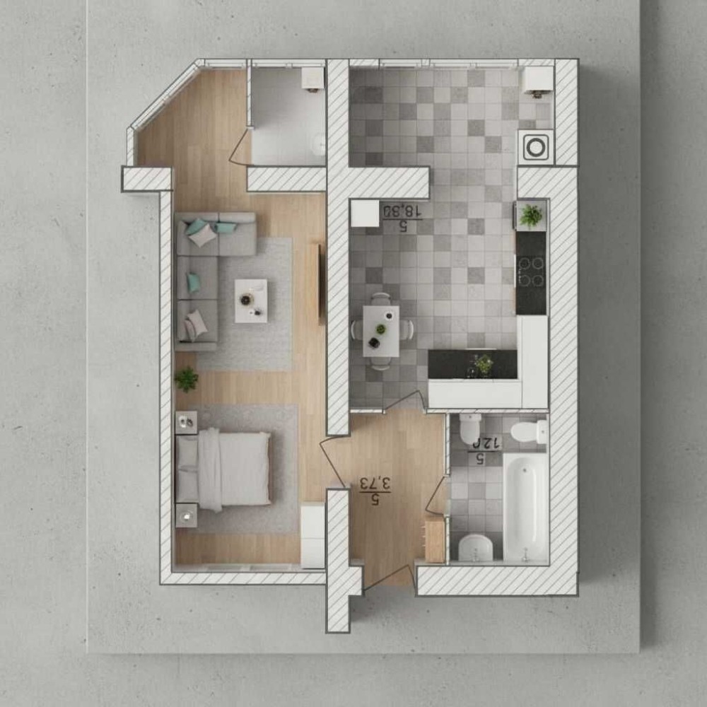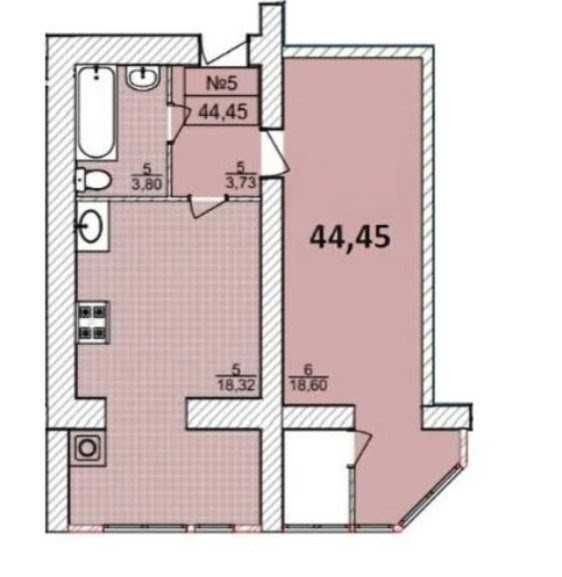 Загальна площа 44,5 м² забезпечує достатньо місця для комфортного життя.