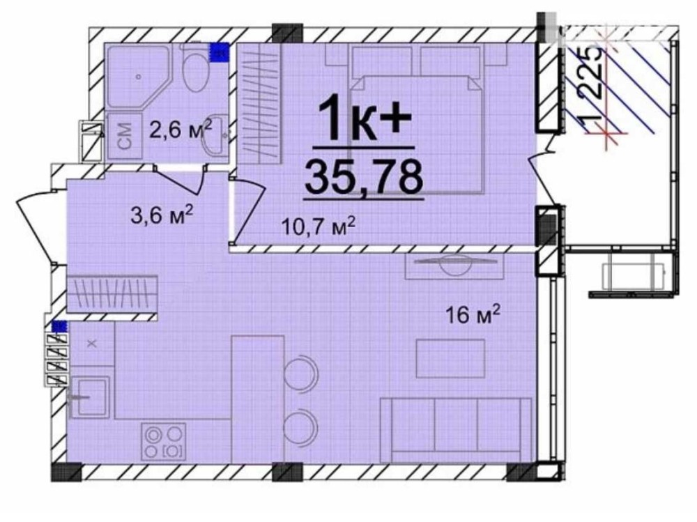 • Общая площадь 35.78 м2