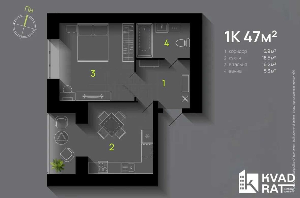 Простора 1 кім квартира 47 м2! Якісний забудовник БЛАГО