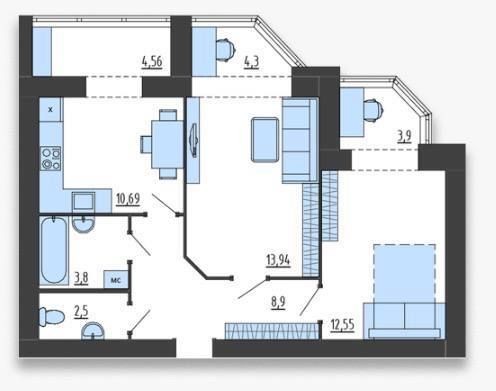 • Общая площадь 65 м2