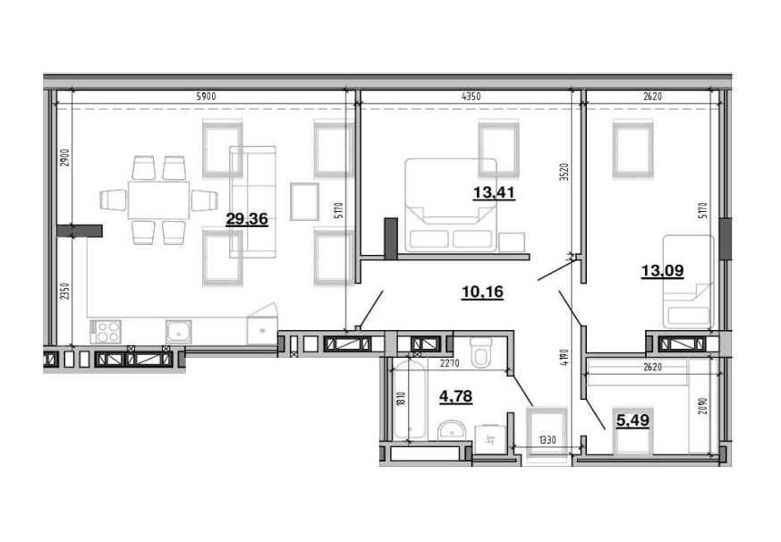 • Общая площадь 77.9 м2