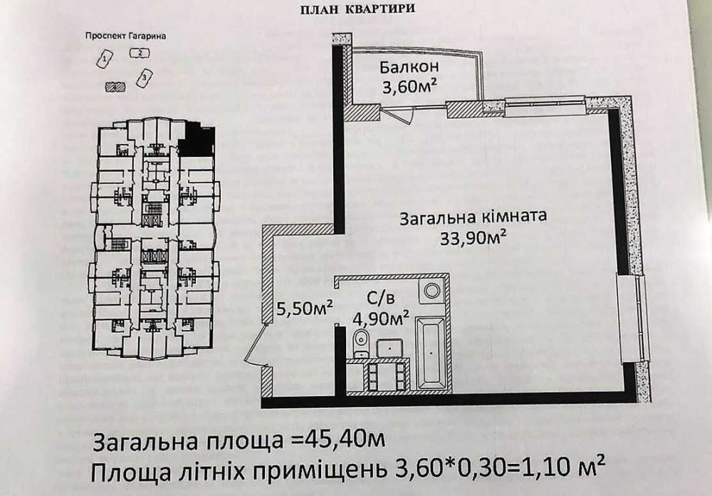 • Общая площадь 45.4 м2