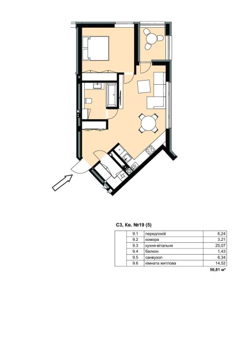 • Общая площадь 56.81 м2